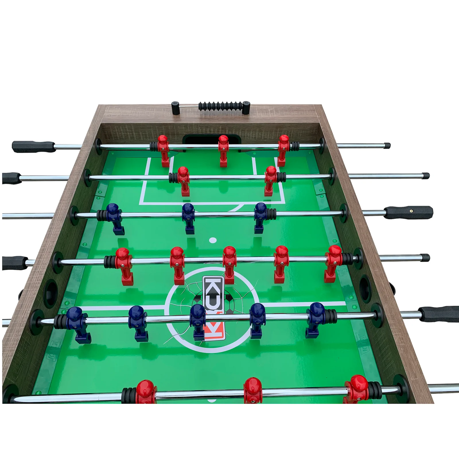 The ½-inch playing field stays level thanks to the leg levelers, and counterbalanced players allow for intense gameplay with adjustable goalie configurations. Semi-solid stainless-steel rods with non-slip wooden handles ensure precise shots. This table is one of the best home options, perfect for enjoying games and strengthening relationships with family and friends. Plus, enjoy fast, free shipping to start your experience quickly!