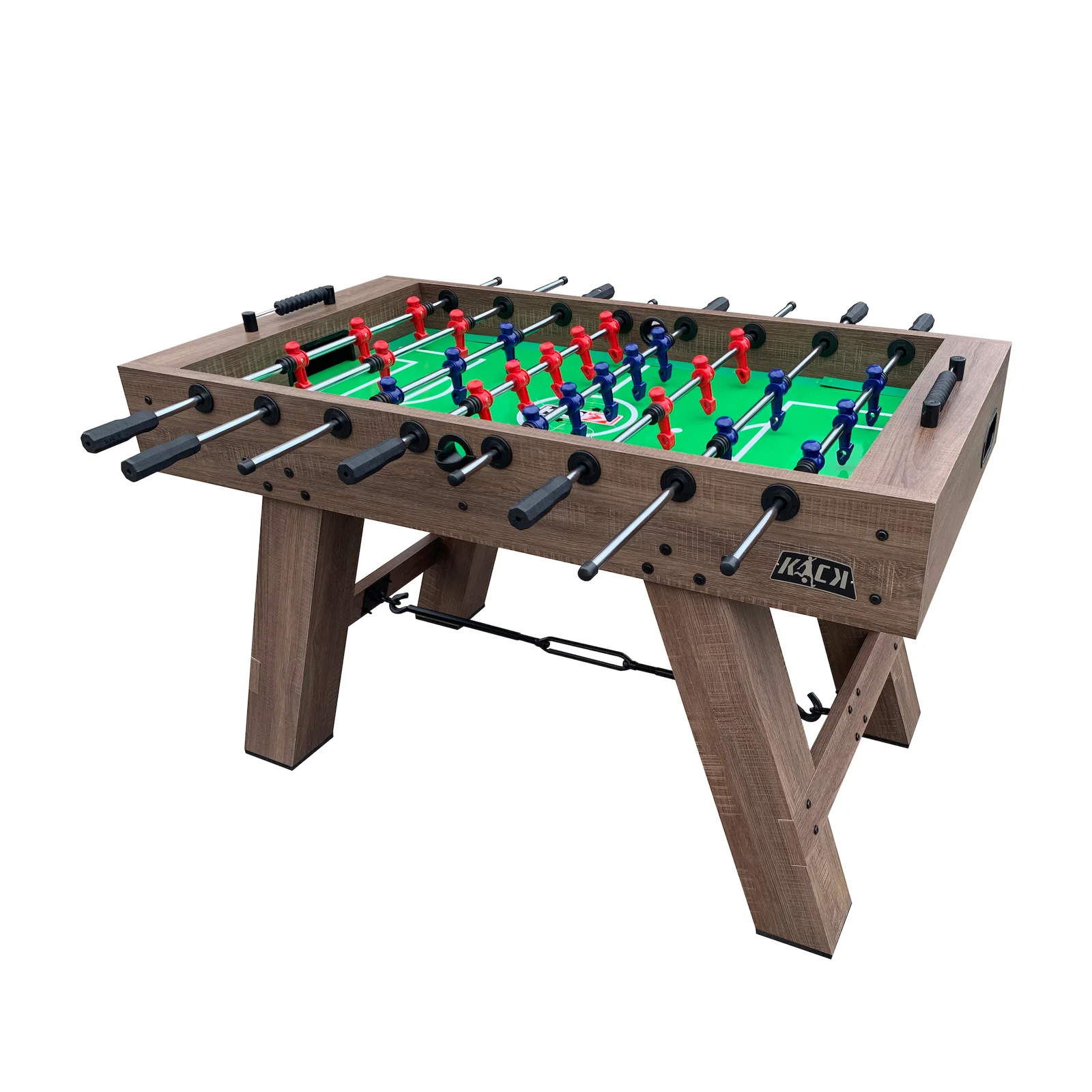 The KICK Cavalier 55" Foosball Table stands out as a top choice for many customers. It's simple design fits any room, while its quality impresses even experienced players. The sturdy cabinet features thick square legs with durable leg levelers, ensuring stability during matches. Bars between the legs further enhance stability.