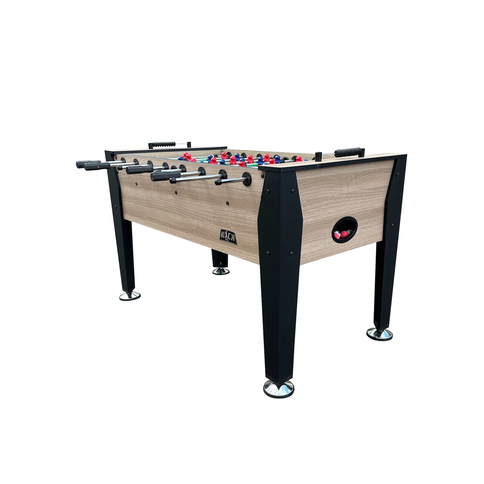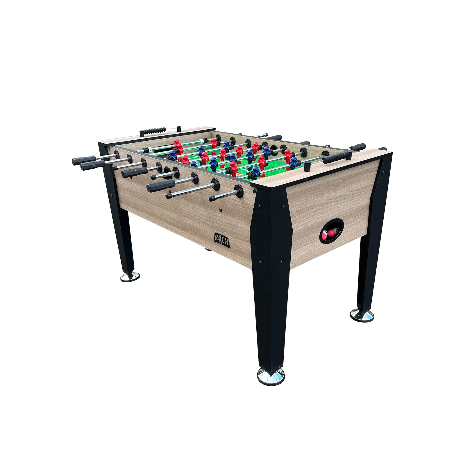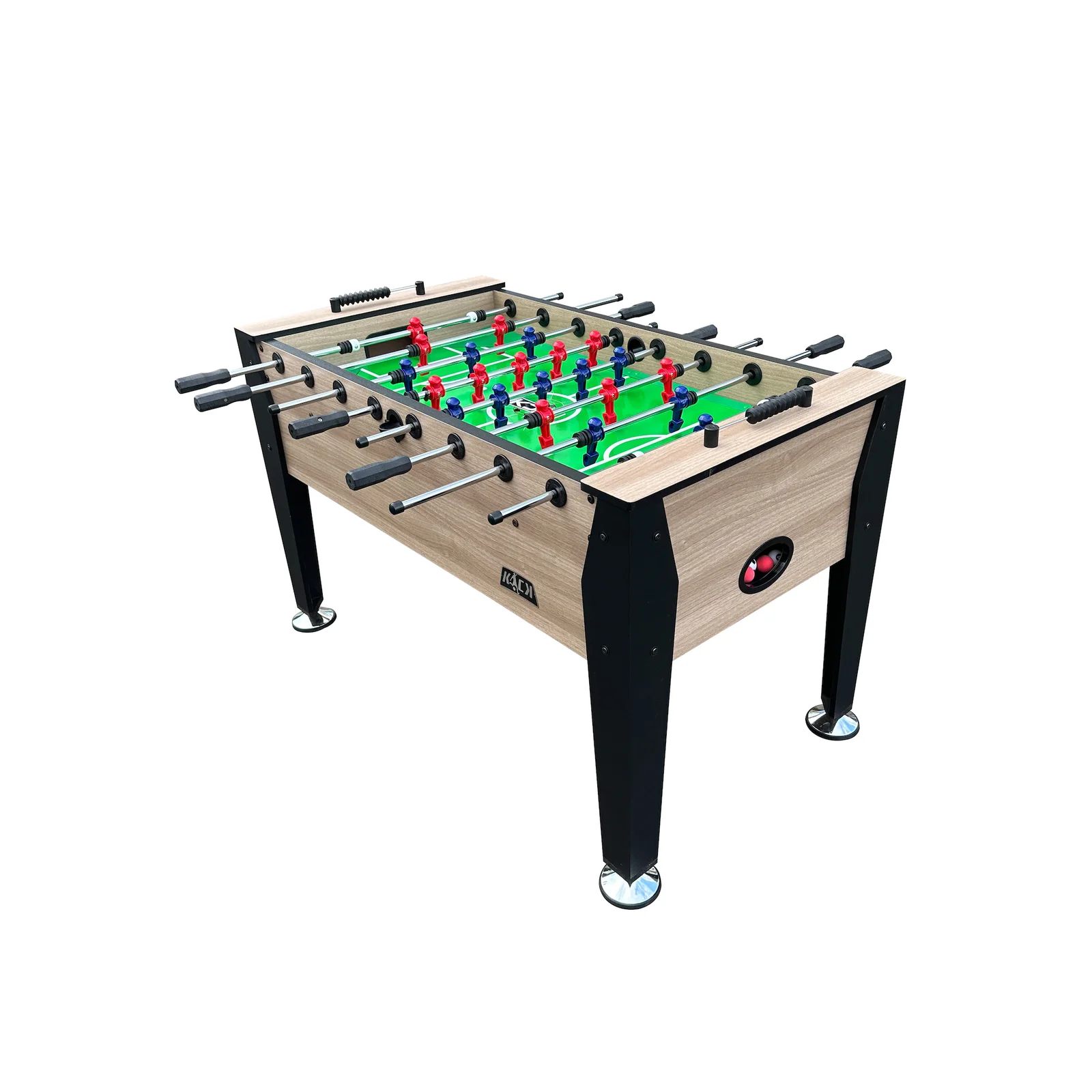 This strong and sturdy foosball table is so much fun to play on. You can enjoy it for hours because every game is really enjoyable. You can choose your team from two sets of counterbalanced and uniformed players, enhancing customization and gameplay. With strong stainless-steel rods and easy-to-grip ABS handles, you can trust that every shot will go where you aim. Your skills will get better quickly with this table, and everyone who plays on it will see how great it is!
