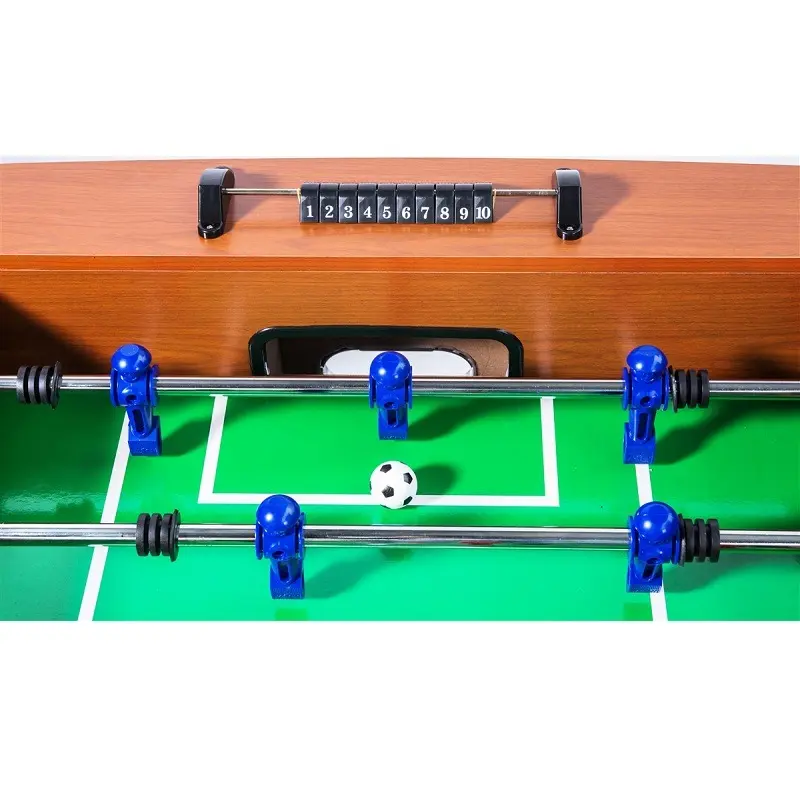 Furthermore, it includes two sets of counterbalanced players and uniformed men, along with semi-solid stainless-steel rods and no-slip wooden handles for precise shots.