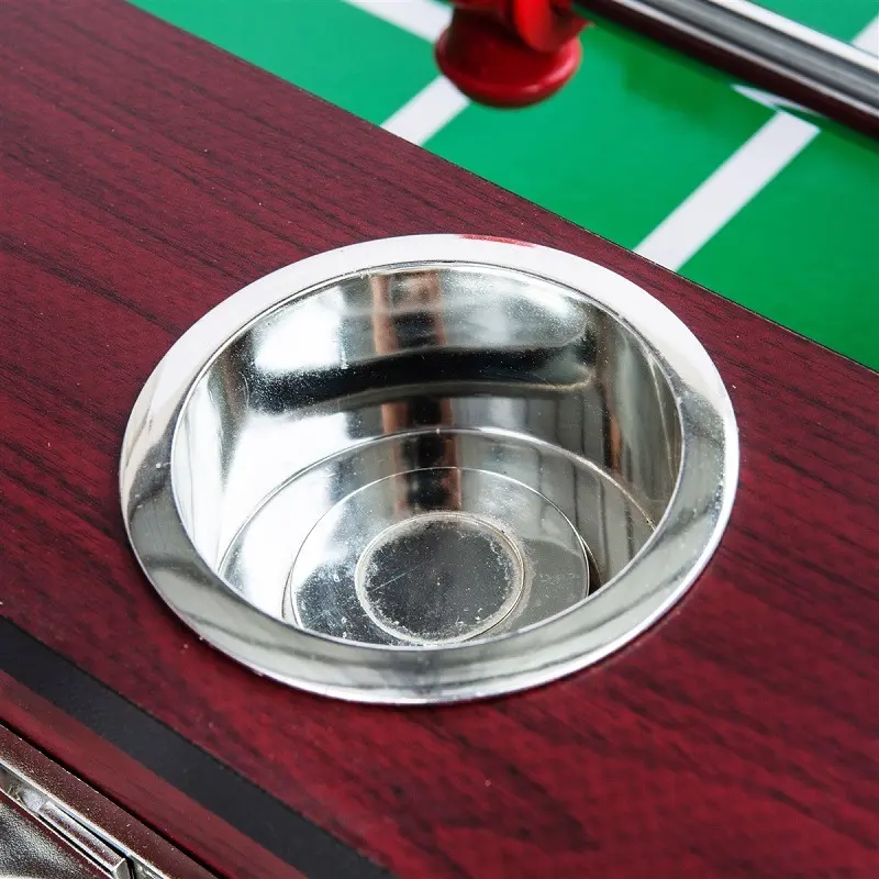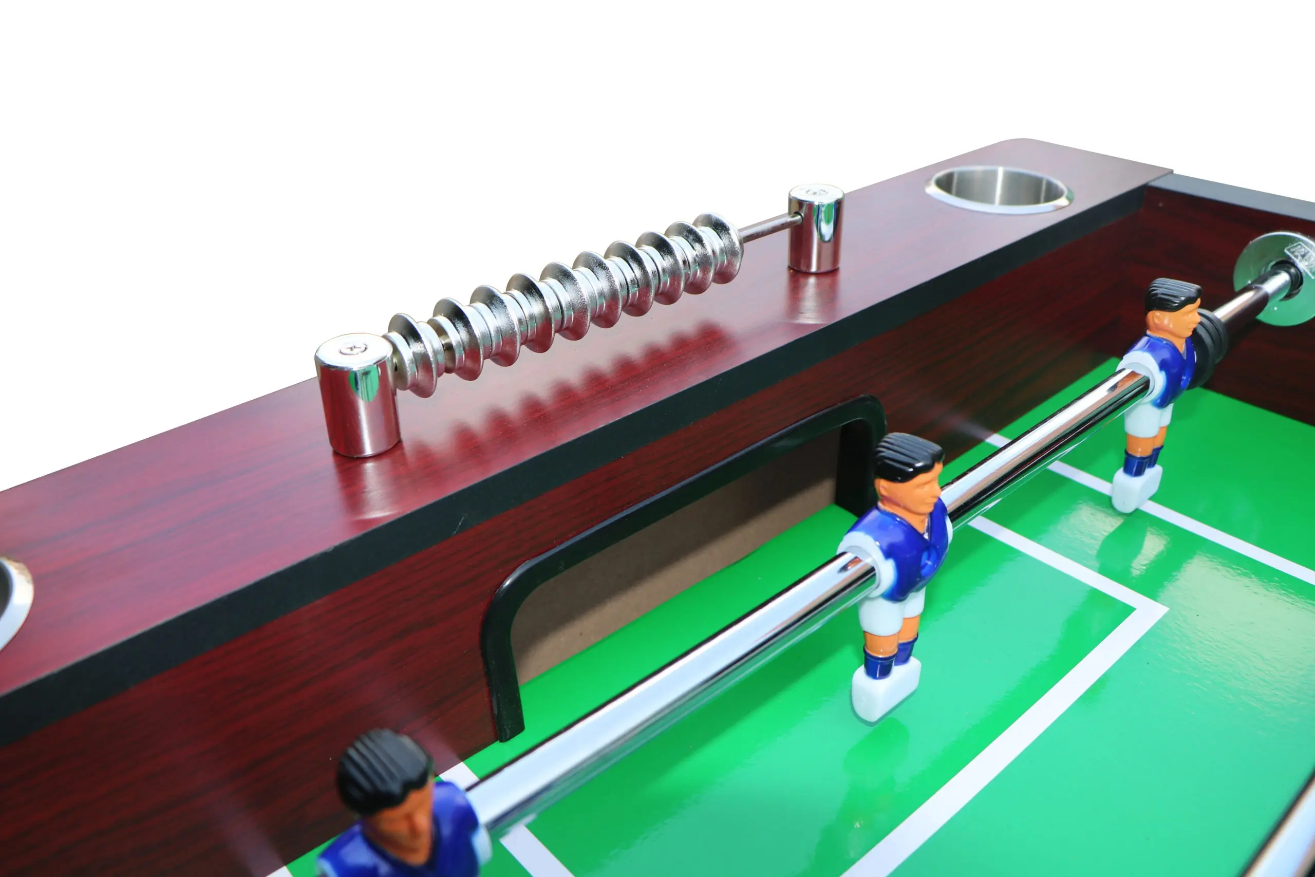 The playing surface accommodates both 1-man and 3-man goalie configurations. Additionally, it includes Uniformed-Men and Counterbalanced-Men players. Furthermore, high-quality rods and no-slip wooden handles ensure precise shots, thereby enhancing your skills. We guarantee you'll appreciate every aspect of this table, including fast and free shipping. Plus, enjoy a Limited Lifetime Warranty on every part. Your satisfaction is our priority!