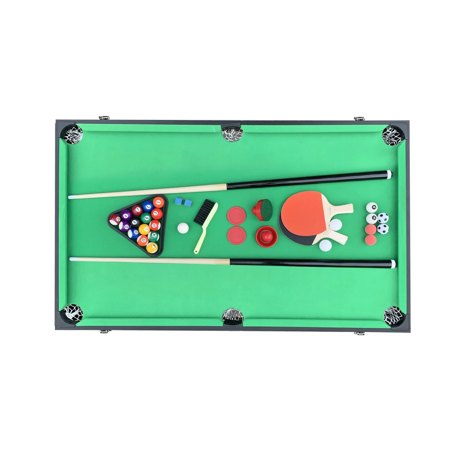 Not only does it maximize enjoyment, but it also saves space, perfect for family gatherings and indoor activities. With its sturdy 3.5-inch leg levelers, you can play confidently, ensuring a stable gaming experience. Additionally, the table includes all necessary accessories for each game, allowing easy transitions and immediate play with family and friends.