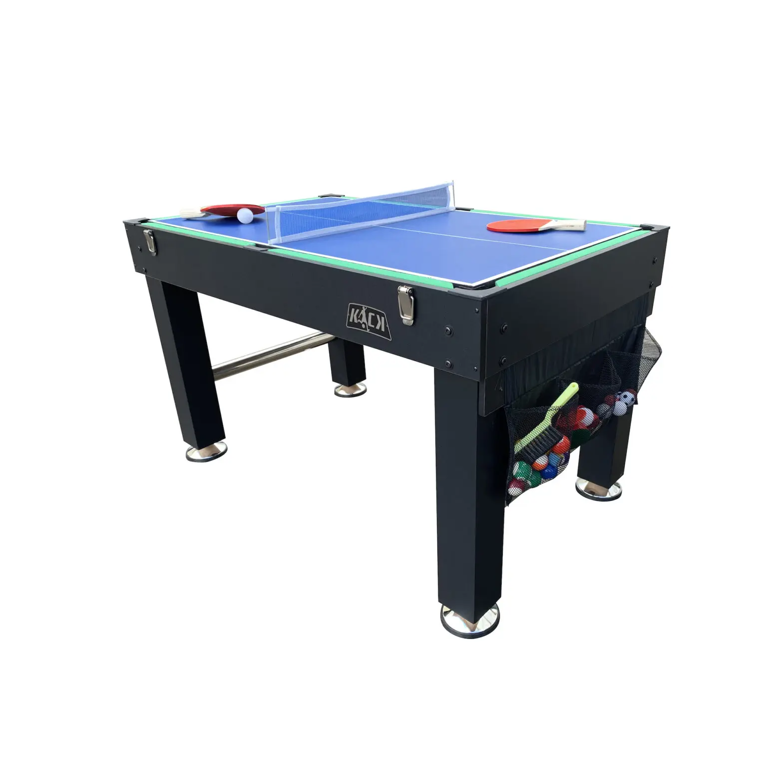 The KICK Morpheus 55" 5 in 1 Multi-Game Table excels as a multi-game table, crafted with exceptional quality. It offers five exciting games—glide hockey, foosball, billiards/pool, table tennis, and basketball—in one space-saving design, perfect for family and friends. The square leg design and 5-inch sturdy leg levelers ensure a robust structure and a level playing field. Enjoy hours of fantastic gameplay with this durable and versatile table, designed for both kids and adults.